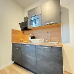 The 20 m² Appartement Cosy 1 Personne N6 has a living room and a fully equipped kitchen, and comforts such as climate control.